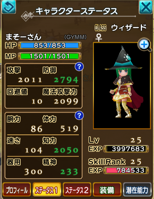 ちなみにステータスは以下の通り(バフ等の補正なし)