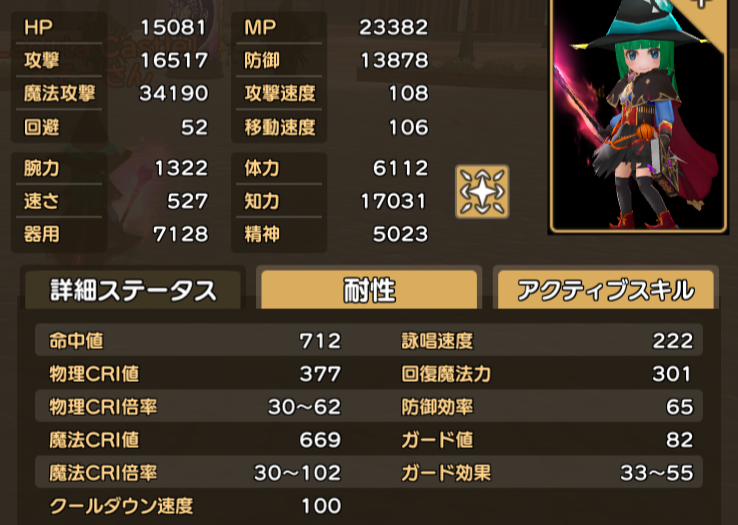 知力5000・魔攻12000であれば、ダメージ14000で回復量は700程度
