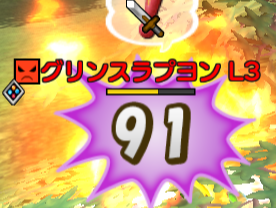 被験体はグリンスラプヨンLV3です。 ダメージは480前後となります。 |