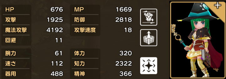 武器がノーマルオシャレなのでそこまで魔法攻撃力は有りませんが…
